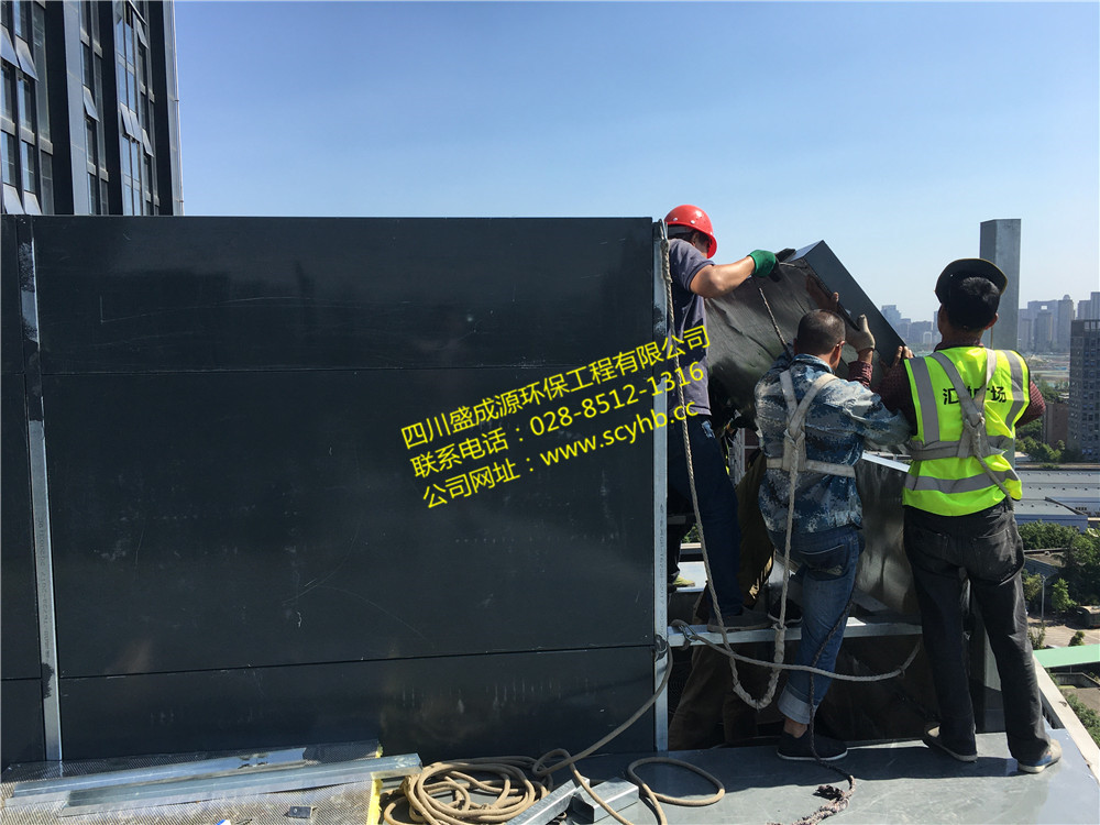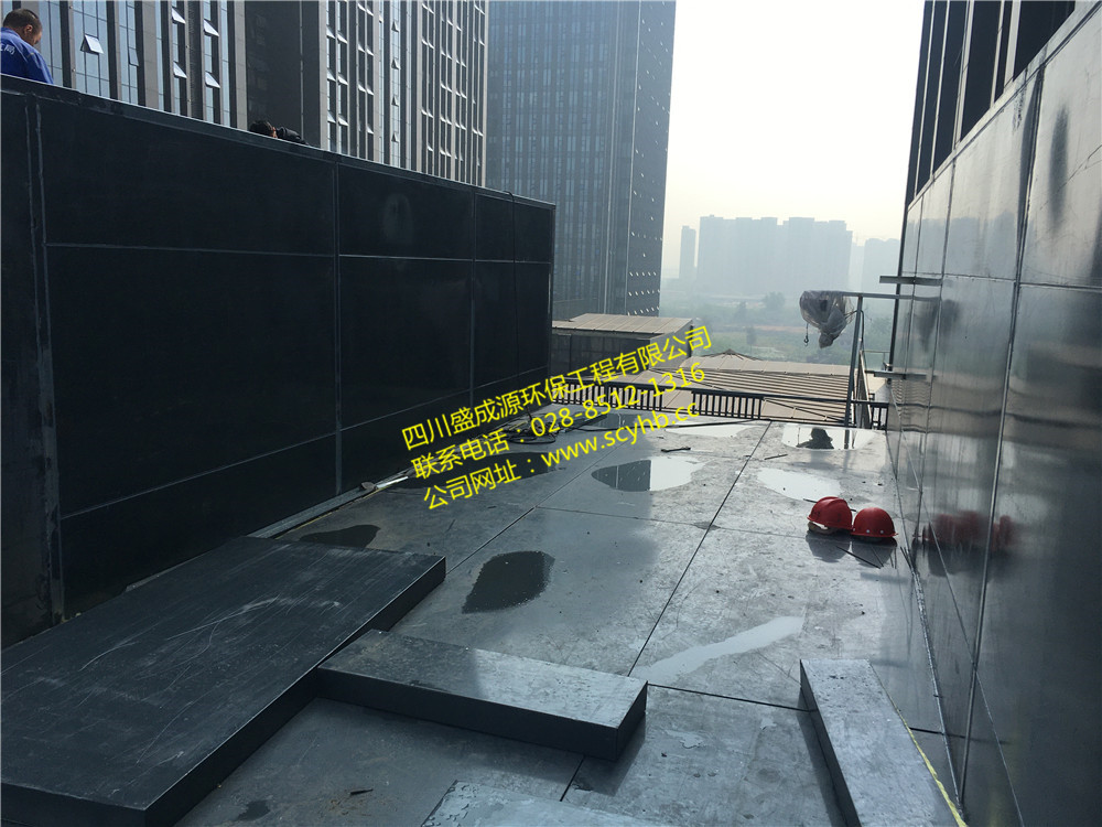 该项目位于成都汇融创客广场11层屋面,螺杆机组较多,噪音很大,离办公室又较近,最近处仅2米距离,噪声对办公环境影响极大,治理难度很大。经过我司40天紧张施工后,顺利完成降噪施工工作。