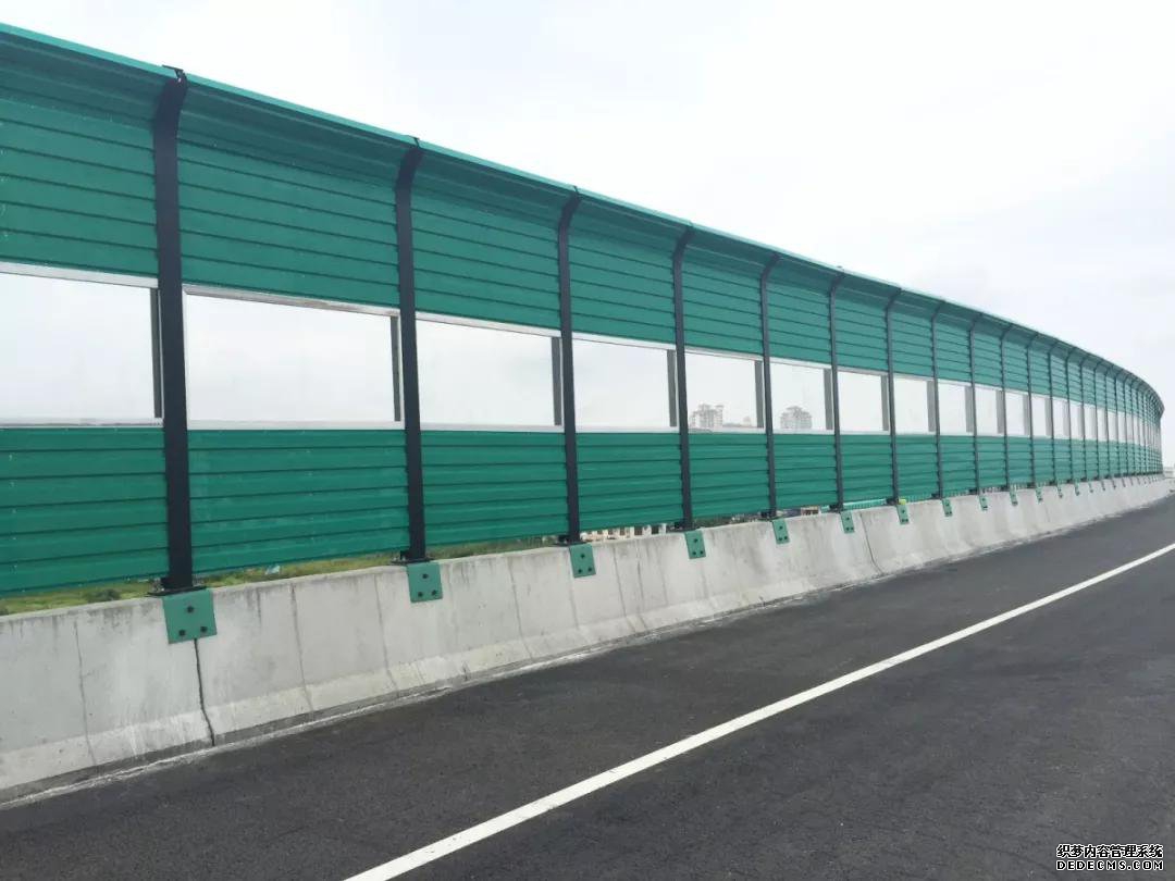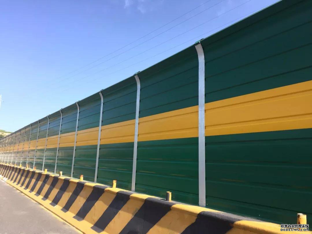 主要由钢结构立柱和吸隔声屏板两部分组成,立柱是声屏障的主要受力构件,它通过螺栓或焊接固定在道路防撞墙或轨道边的预埋钢板上;吸隔声板是主要的隔声吸声构件,它通过高强弹簧卡子将其固定在H型立柱槽内,形成公路声屏障(隔音墙)。