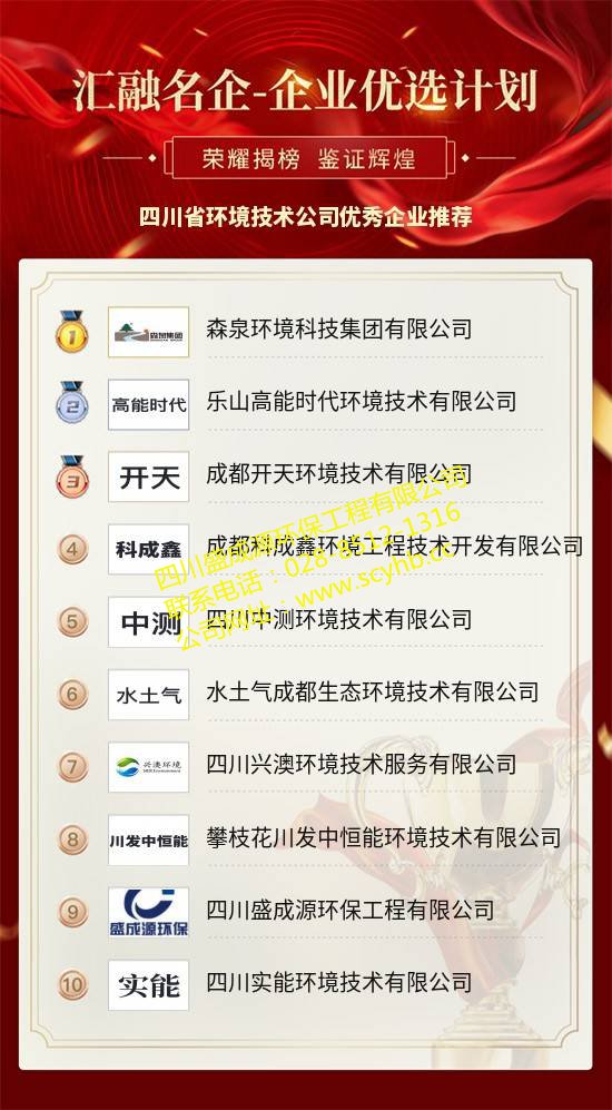汇融名企—企业优选计划,四川省环境技术公司优秀企业推荐排名结果如下: